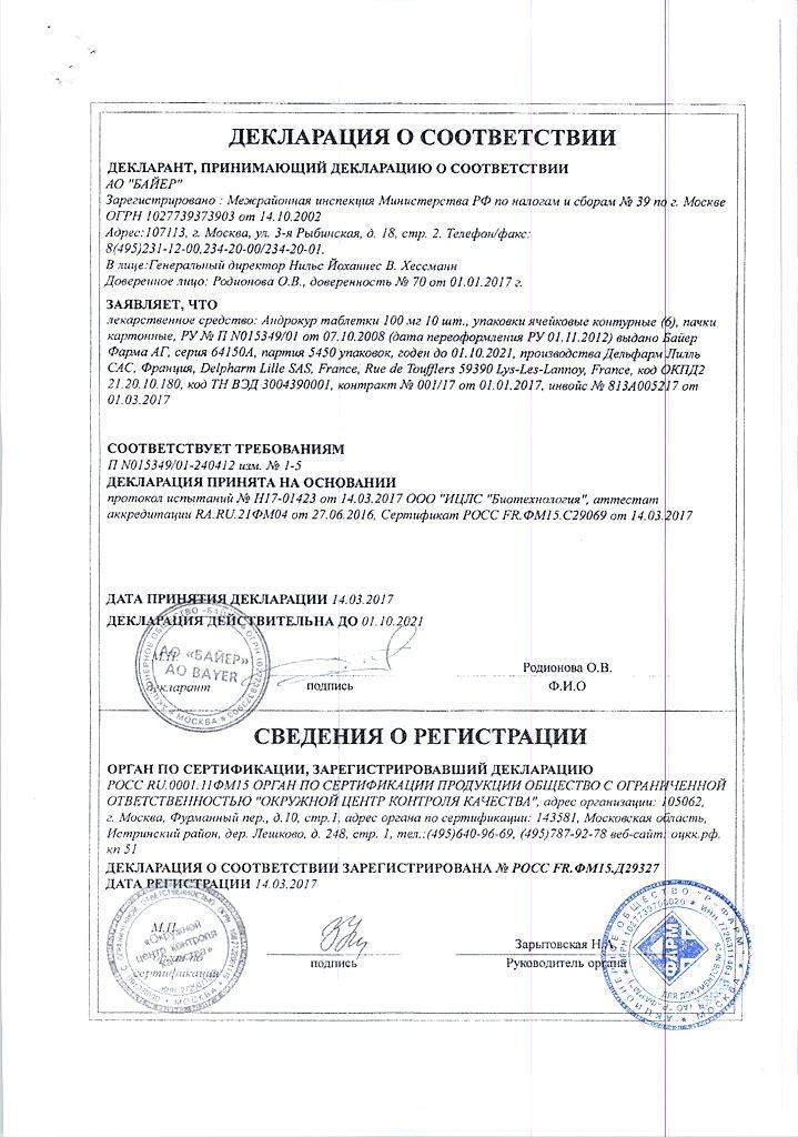 Инструкция по применению Андрокур 100 мг таб. №30