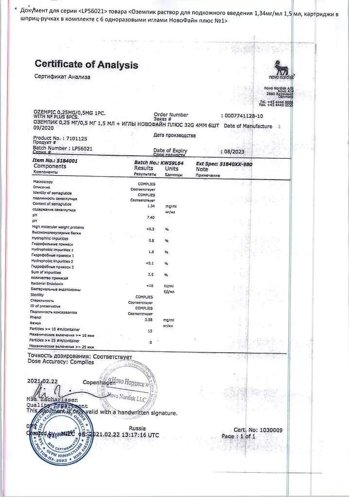- Оземпик® 0,25 или 0,5 мг/доза раствор для п/к введения в предварительно заполненной шприц-ручке позволяет вводить дозы 0,25 или 0,5 мг. Данная шприц-ручка предназначена для повышения дозы и поддержания терапевтической дозы 0,5 мг. 1 шприц-ручка содержит 1,5 мл раствора.