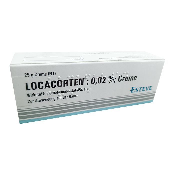 Тормозит высвобождение медиаторов воспаления, характеризуется интенсивным местным действием и отсутствием общего действия. При воздействии на кожу тормозит процесс краевого скопления нейтрофилов, что приводит к уменьшению воспалительного экссудата и продукции цитокинов, торможению миграции макрофагов, уменьшению процессов инфильтрации и грануляции. Оказывает противовоспалительное, противоотечное, противоаллергическое и антипролиферативное действие. Крем Локакортена оказывает гидратирующее воздействие на кожу, повышая ее эластичность, а также в значительной мере насыщает жирами эпидермис и глубоко проникает в кожу.
