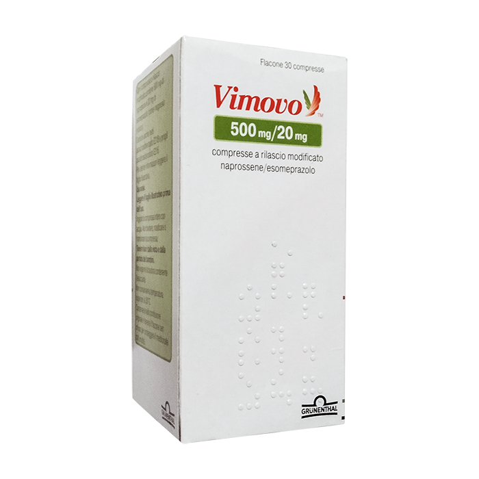 Комбинированный препарат, содержащий НПВП и ингибитор протонового насоса. Препарат Вимово™ разработан в виде таблеток с последовательной доставкой веществ: в оболочке содержится эзомепразол магния немедленного высвобождения, а в ядре - напроксен замедленного высвобождения, покрытый кишечнорастворимой оболочкой. В результате эзомепразол высвобождается в желудке до растворения напроксена в тонкой кишке. Кишечнорастворимая оболочка предотвращает высвобождение напроксена при рН ниже 5.5, обеспечивая защиту от возможного негативного воздействия напроксена на слизистую оболочку желудка.