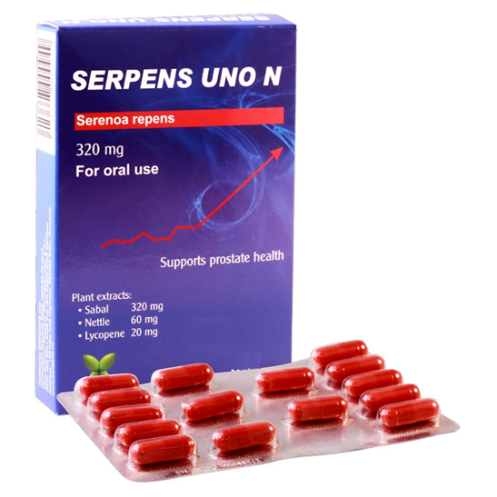 Показания. Serpens используется при лечении доброкачественного увеличения простаты (гипертрофия простаты), характеризующегося некоторыми из следующих симптомов: частые позывы к мочеиспусканию (поллакиурия); частые позывы к мочеиспусканию в ночное время (никтурия); затрудненное мочеиспускание; уменьшение силы и объема струи мочи.