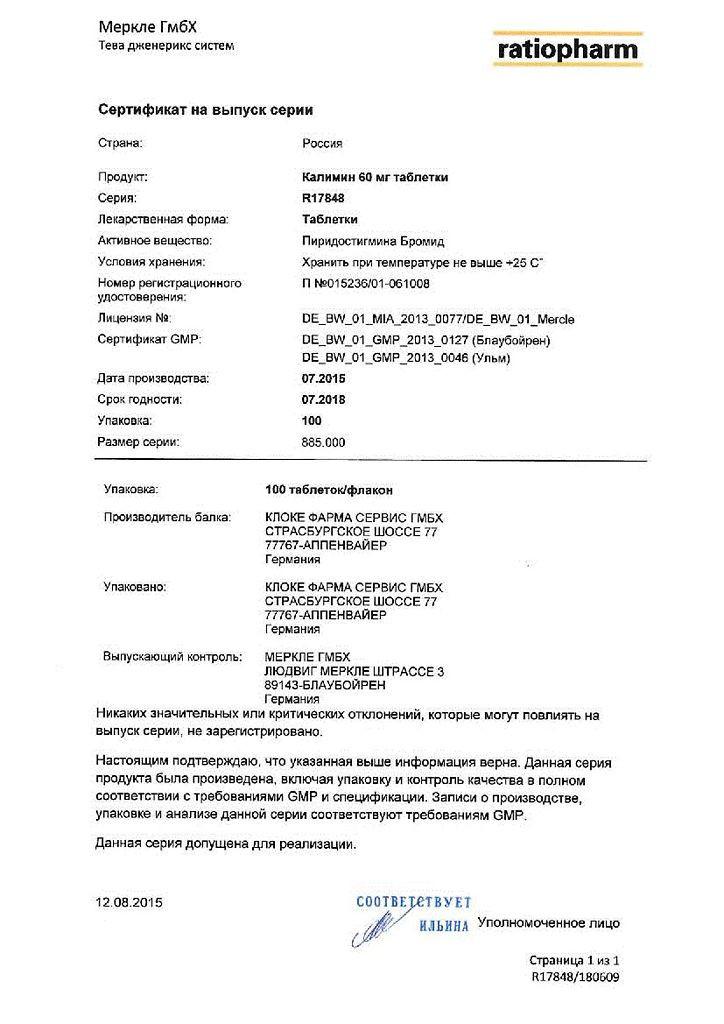 Применение и дозировка. Медикаментозное лечение достигается благодаря приему антихолинэстеразного препарата на основе Пиридостигмина бромида – Калимин. Средство применяют при миастении и миастеническом синдроме, а также при отсутствии тонуса кишечника, бронхов, мочевого пузыря и других гладкомышечных органов. В большинстве случаев предписывают Калимин 60 Н с начальной дозой – 1 драже 1-2 раза в сутки. Желательно согласовать порцию приема препарата с врачом иначе невозможно достигнуть лечебного эффекта.