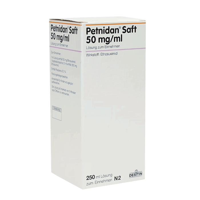 Петнидан Сироп содержит сироп с Этосуксимид 50000 мг / мл.