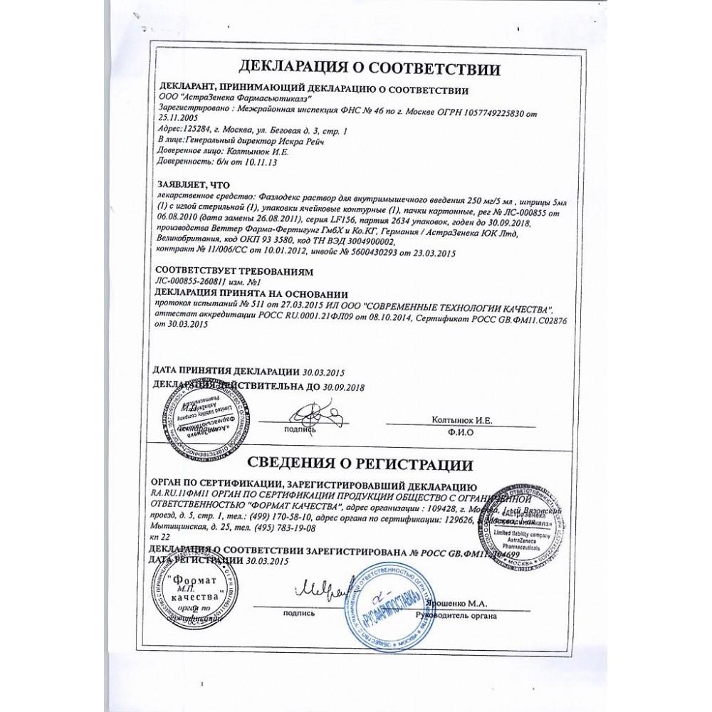 Экскретируется препарат Фазлодекс преимущественно в виде производных, основным путем экскреции является выведение с калом, менее 1% введенной дозы экскретируется мочевыделительной системой. Для препарата характерен значительный клиренс (порядка 9,5–12,5 мл/мин/кг).