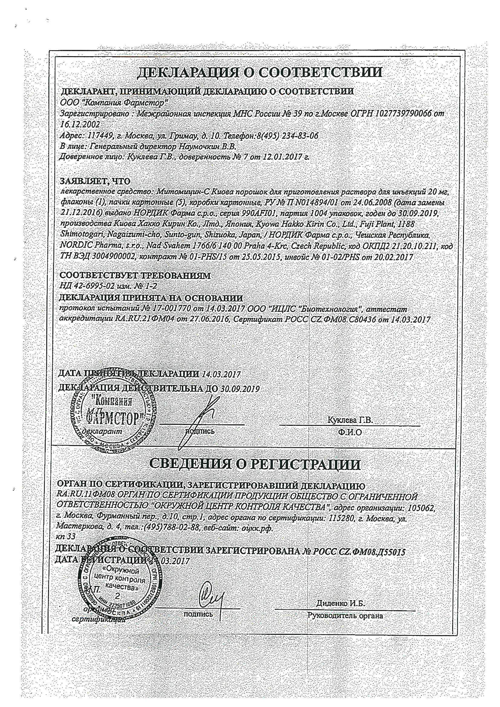 Сообщалось о летальных исходах, обусловленных сепсисом, развившимся в результате лейкопении. Митомицин не следует назначать больным с уровнем сывороточного креатинина более 1.7 мг/дл.