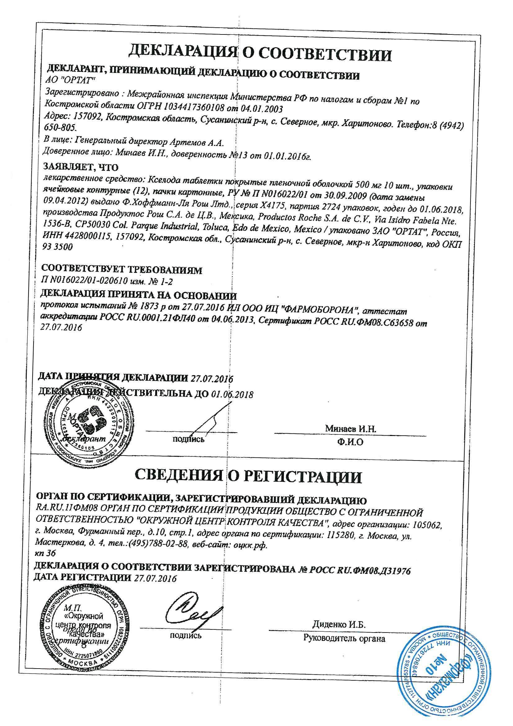Особые указания. С осторожностью следует принимать препарат больным с ИБС, почечной и печеночной недостаточностью Необходимо проводить тщательный медицинский контроль за проявлениями токсичности у пациентов, получающих терапию препаратом Кселода.
