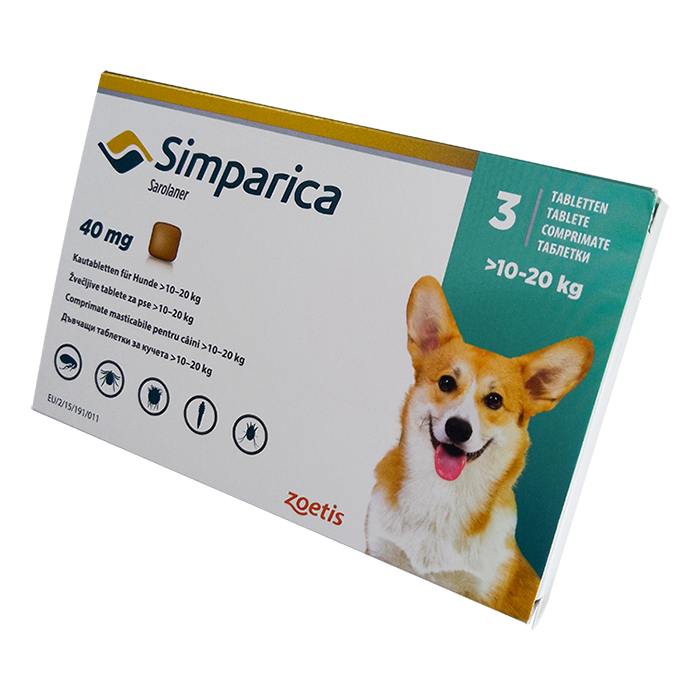 Рекомендуемая доза Симпарики для собак весом от 10 до 20 кг составляет одну таблетку (40 мг сароланера) один раз в месяц. Препарат следует давать собаке желательно во время или после еды для лучшего усвоения.